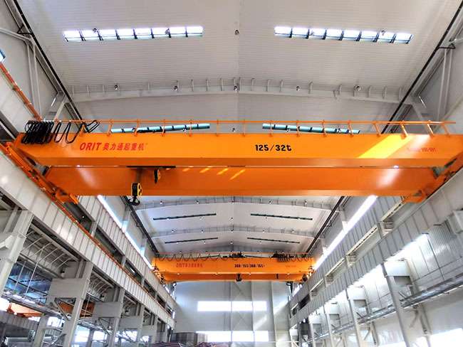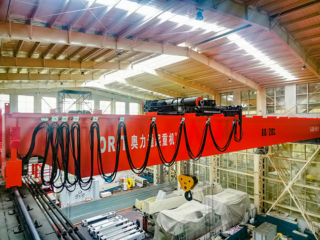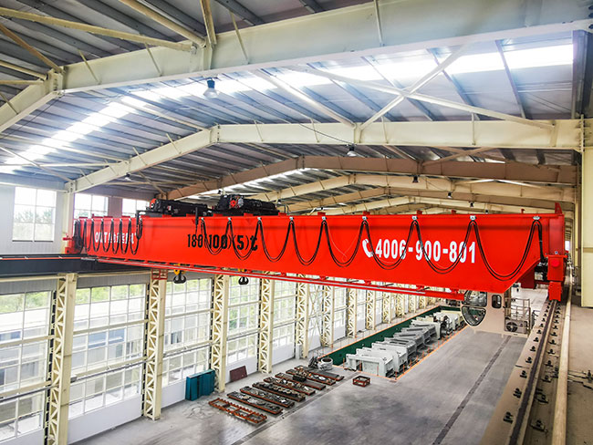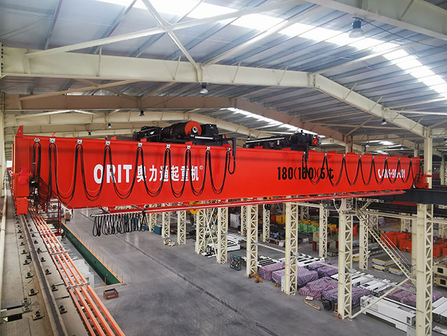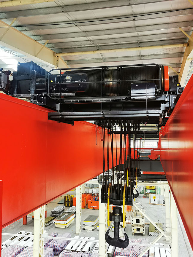 该起重机起重量达到180t,多钩协同翻转重型机床床身,全变频无级调速、自适应大角度斜拉,操作简单、运行平稳,彻底改变了大型重机制造行业危险度极高的床身翻转工艺,彻底消除了重型机床床身翻转安全隐患。获得客户扬力集团好评!